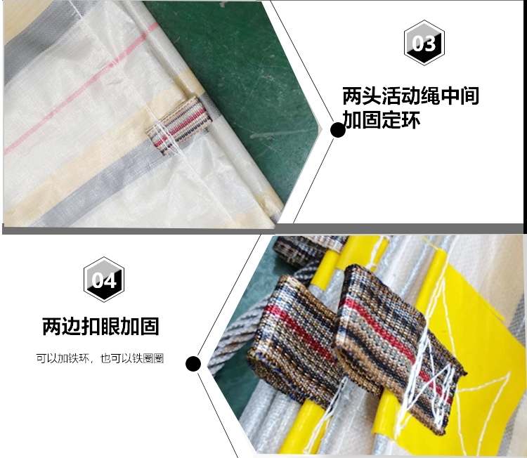 金包銀色PE防水篷布兩頭活動繩中間加固定環;兩邊扣眼加固,可以加鐵環,也可以加鐵圈圈。